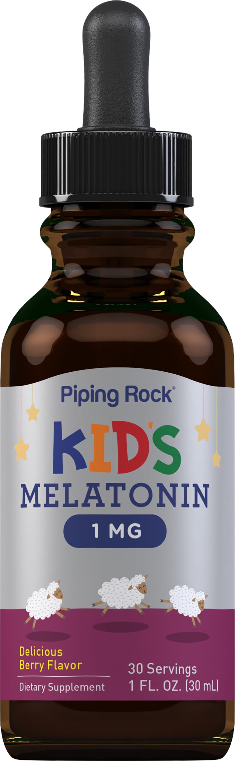 Piping Rock Kids Melatonin Liquid 1 fl oz | 1mg | Pack of 3 Bottles | Berry Flavor Drops | Non-GMO, Gluten Free Supplement