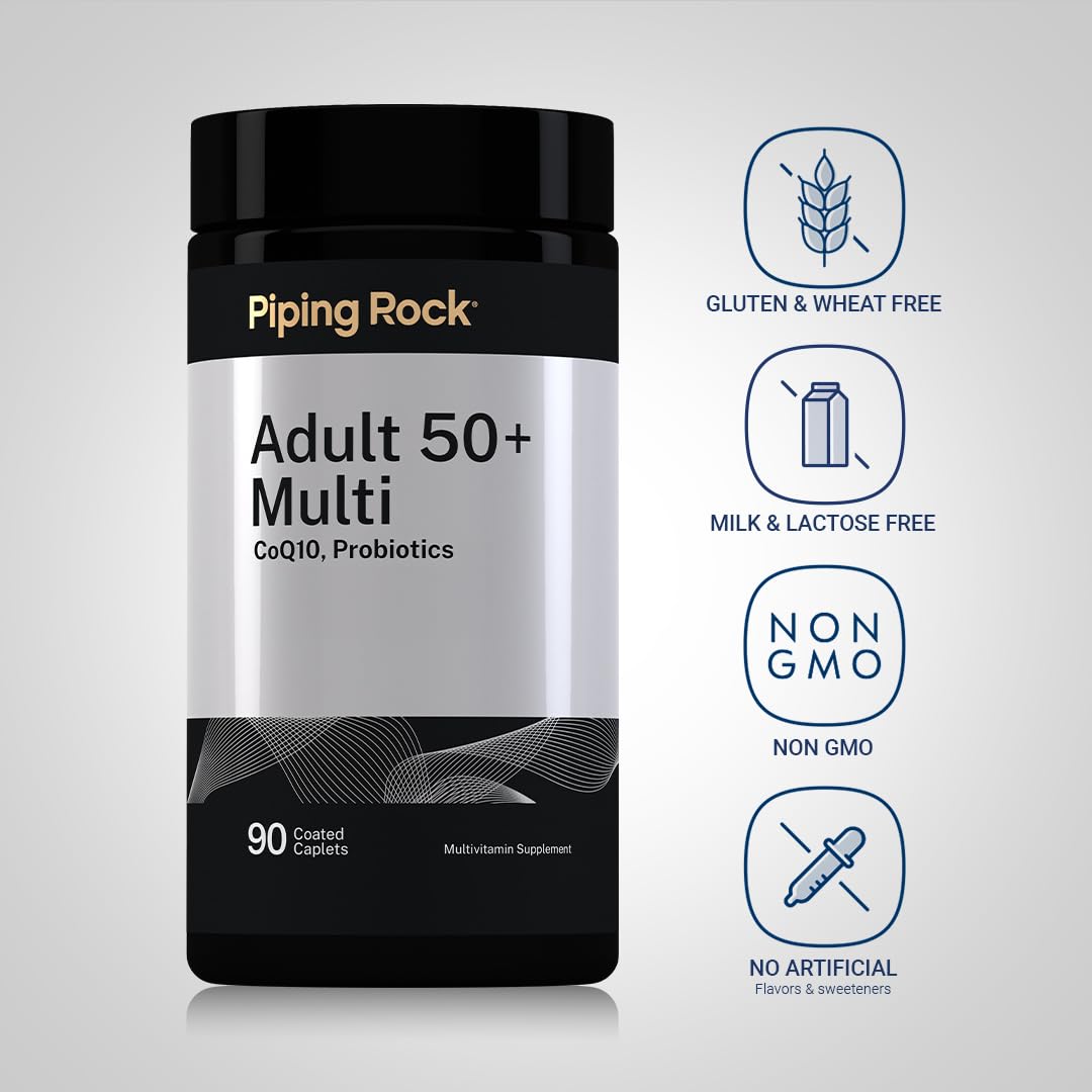 Piping Rock Multivitamin for Adults 50 Plus | 90 Caplets | with CoQ10 & Probiotics | Vegan, Non-GMO, Gluten Free Formula