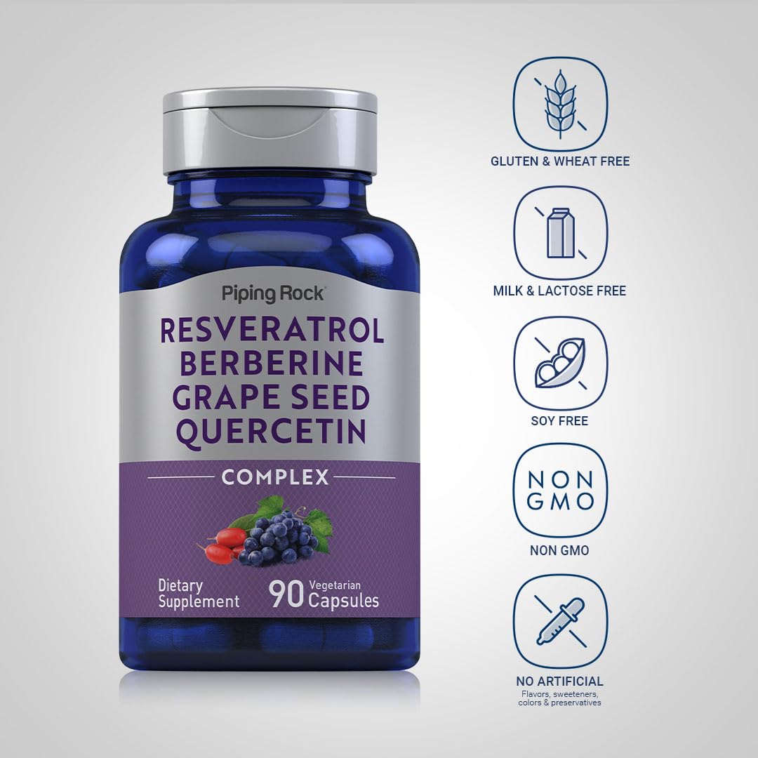 Piping Rock Resveratrol Berberine Grape Seed & Quercetin Complex | 90 Capsules | Vegetarian, Non-GMO, and Gluten Free Supplement