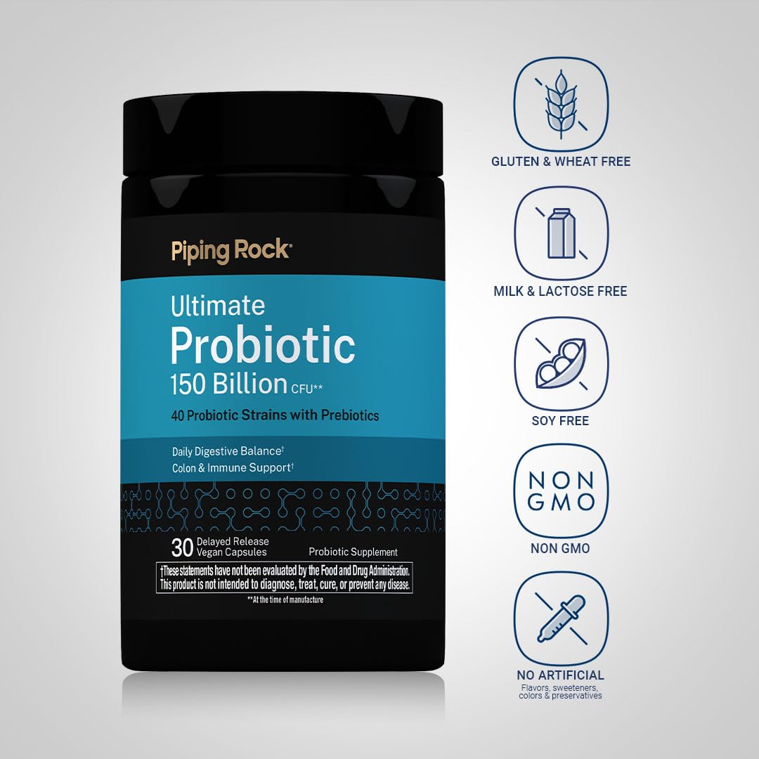 Piping Rock Ultimate Probiotic 150 Billion CFU | 30 Capsules | 40 Probiotic and Prebiotic Strains | Daily Digestive Balance | Non-GMO, Gluten Free