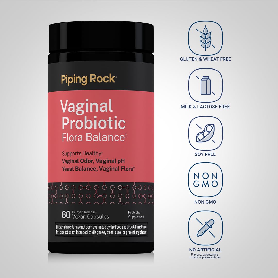 Piping Rock Vaginal Probiotic Capsules | 60 Count | for Women | Lactobacillus with Prebiotics | Supports Healthy Odor, pH, Yeast Balance, and Flora | Non-GMO, Gluten Free—